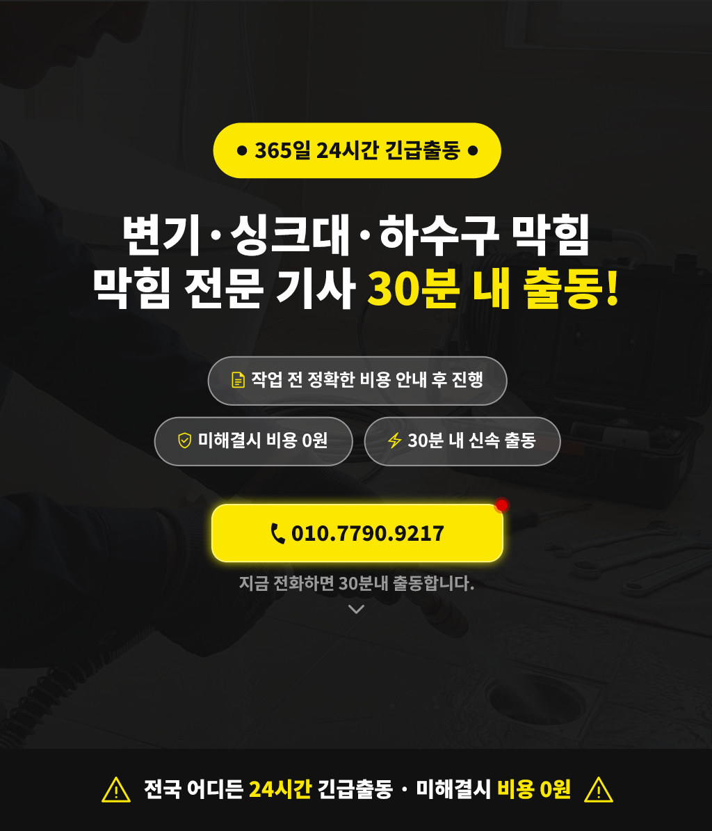 변기, 싱크대, 하수구 막힘! 막힘 전문 기사 30분내 출동!