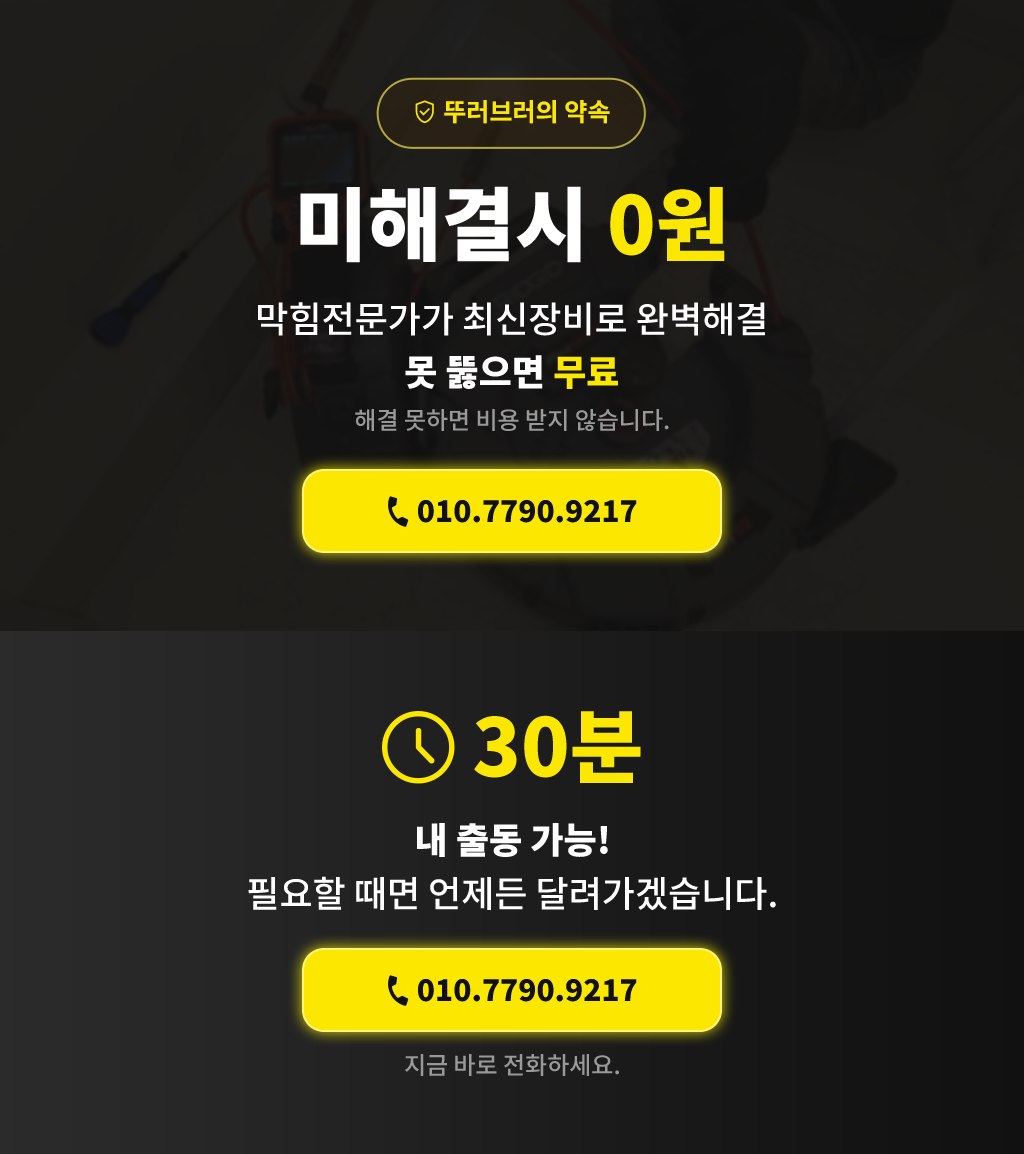 미해결시 0원! 30분 내 출동 가능! 필요할 때면 언제든 달려가겠습니다.